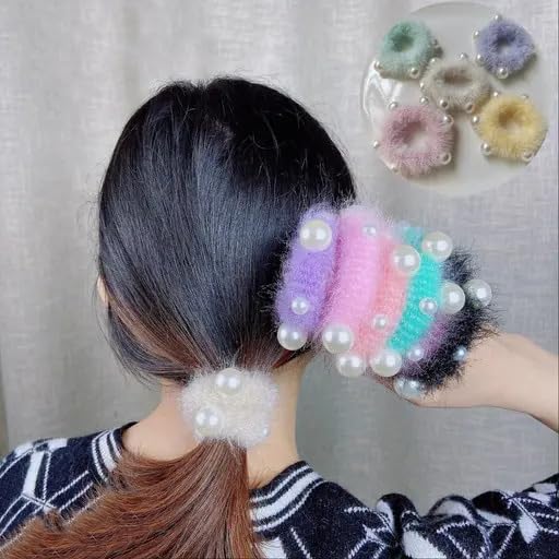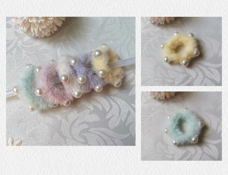 Crafted from ultra-soft fur fabric, these scrunchies feel gentle and cozy on your hair while offering a comfortable, stretchable hold โจ๐. The added pearl detailing gives each scrunchie a refined, stylish finish, making even simple ponytails and buns look party-ready.